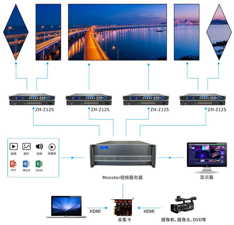 產(chǎn)品概述中航ZH-Z800視頻服務(wù)器是中航軟件為滿(mǎn)足舞臺(tái)、酒吧、多媒體展廳、會(huì)議室等不同應(yīng)用場(chǎng)景LED大屏精心打造的一款集成播控服務(wù)器。最大支持4路5120x2880@60Hz超大分辨率點(diǎn)對(duì)點(diǎn)顯示??梢詫?shí)現(xiàn)功能超強(qiáng)的音視頻播放、多場(chǎng)景編排功能,根據(jù)需求靈活配比,使用戶(hù)管理便捷、操作簡(jiǎn)單,獲得更好的應(yīng)用使用效果
