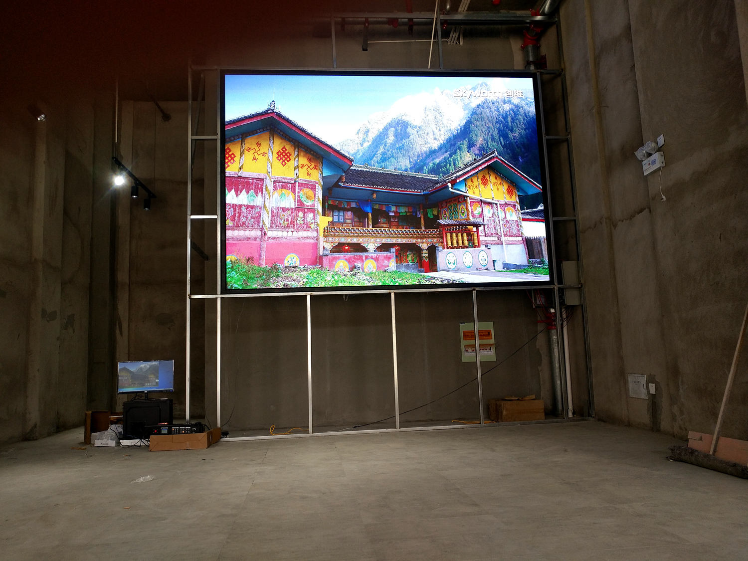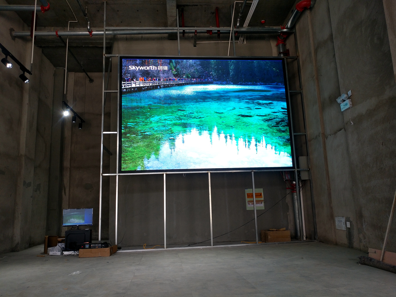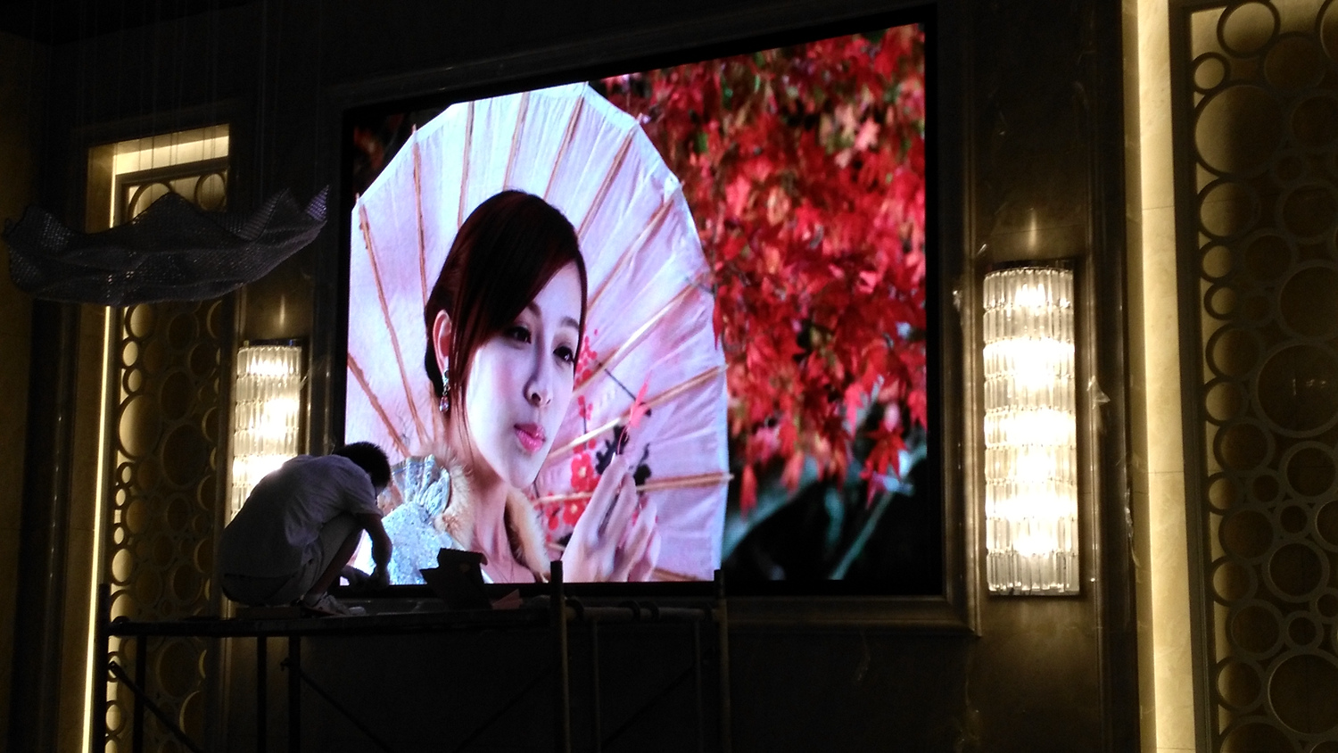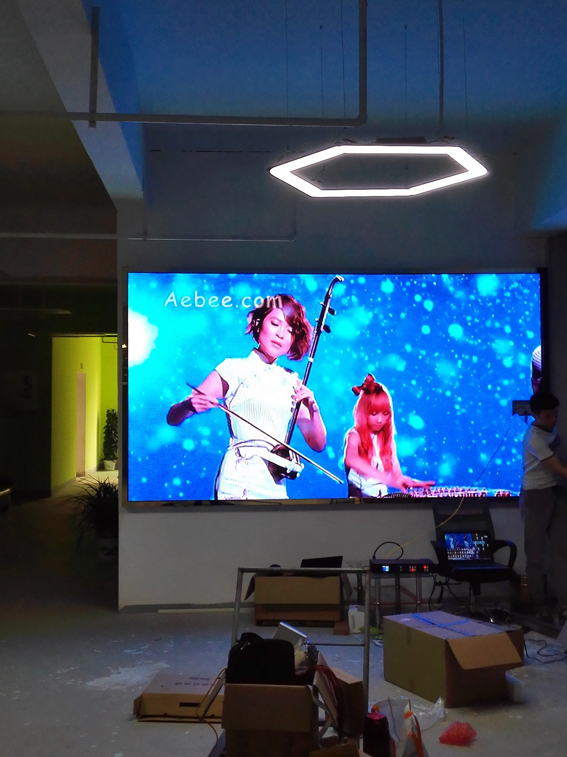 安徽省合肥市某飯店,P2.5總點數960*704,8張接收卡,一張發(fā)送卡,單卡最大帶載128*704。感謝安徽荊涂光電孫總對中航的信任與支持!