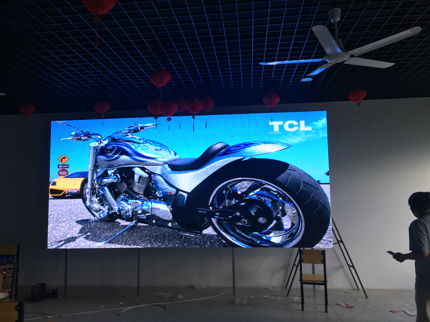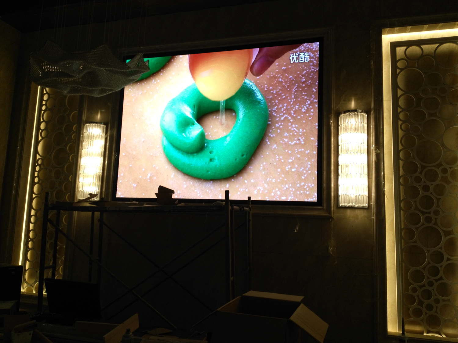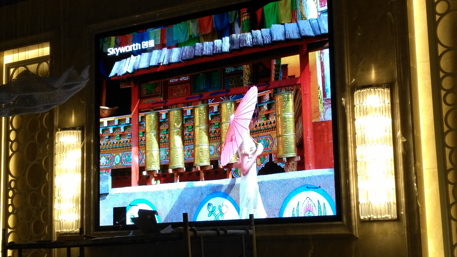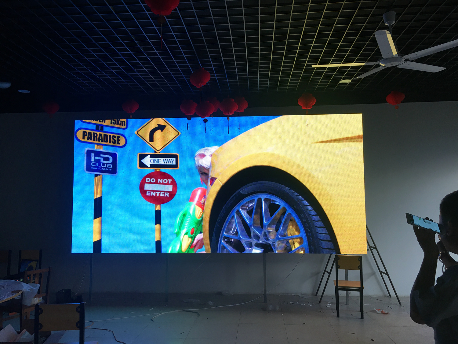 安徽省合肥市某飯店,P2.5總點數960*704,8張接收卡,一張發(fā)送卡,單卡最大帶載128*704。感謝安徽荊涂光電孫總對中航的信任與支持!