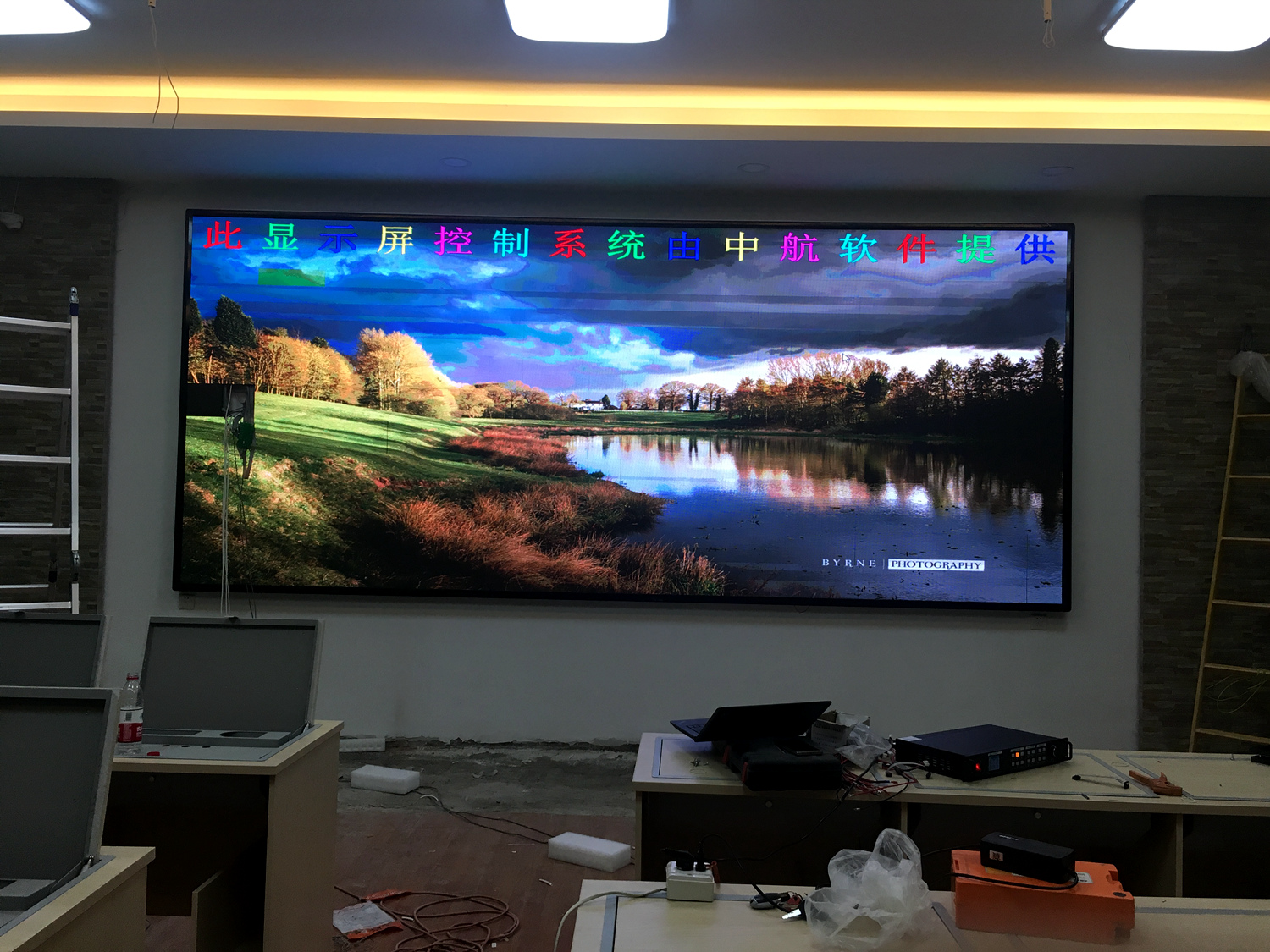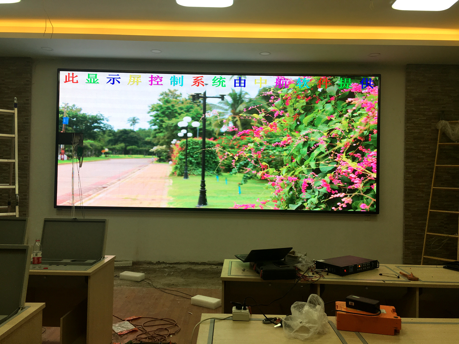 安徽省靈璧縣某單位,P5總點數960*480,10張接收卡,一張發(fā)送卡,單卡最大帶載192*256。感謝金時光電葉總對中航的信任與支持!