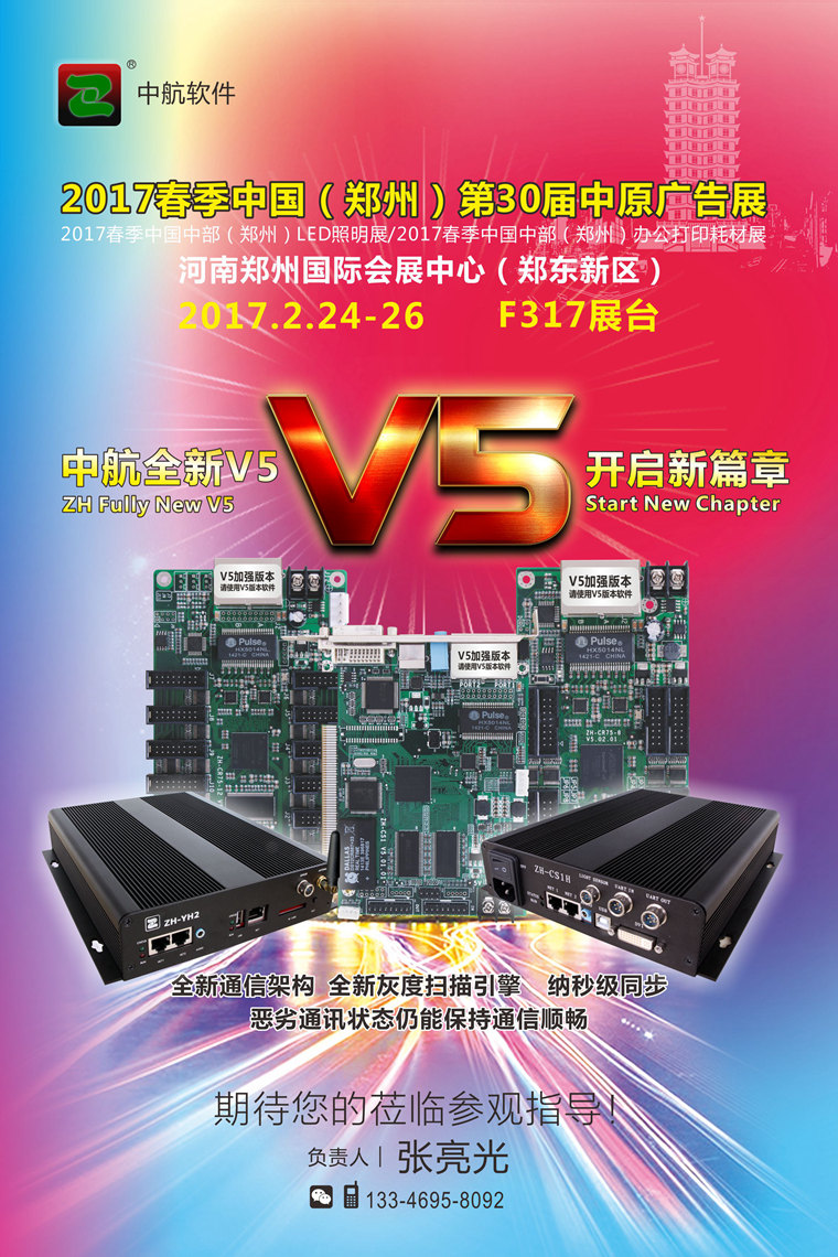 此次展覽會中航展示產(chǎn)品系列:全新V5,視頻處理器,全彩同步系列,全彩異步系列,門楣全彩(高、低灰)系列,超長帶載網(wǎng)口卡,全面升級版WIFI系列,GPRS系列,網(wǎng)絡(luò)卡系列等。誠邀您蒞臨中航展臺,合作發(fā)展!