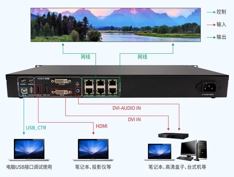 支持千兆網(wǎng)口輸出,支持上下、左右任意拼接;