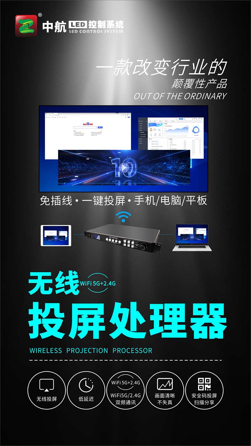 產(chǎn)品介紹中航無線投屏處理器是中航專為會議室、教室等LED顯示屏開發(fā)的一款無線投屏互動系統(tǒng),可直接連接LED大屏幕,同時支持HDMI高清輸出連接液晶屏或會議平板等??梢园蜒葜v者手機(jī)、電腦的音視頻內(nèi)容無線實時傳輸給顯示屏,聲音輸出給音響。可實現(xiàn)觀眾與演講者之間,或者觀眾與觀眾之間信息的無線實時交互。