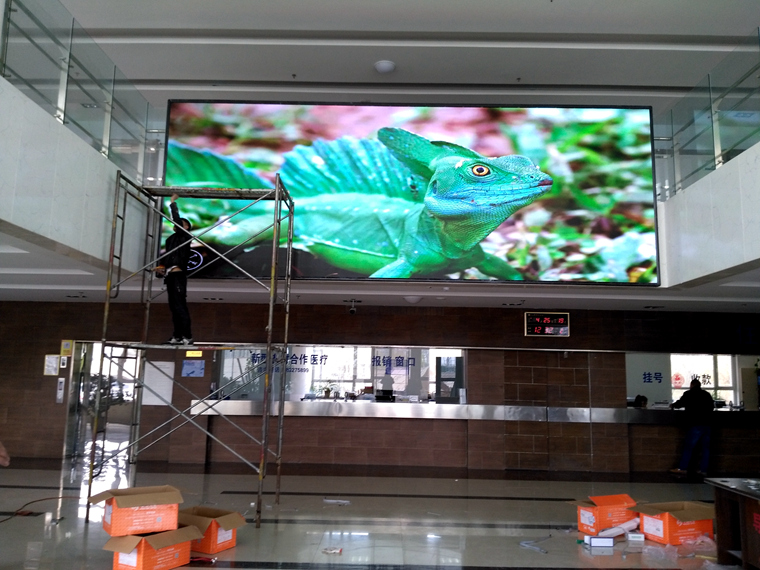 吉林省某縣醫(yī)院單位,戶內(nèi)P4 單卡帶載320*256(高*寬)時效果,一張發(fā)送卡14張接收卡完美帶載!