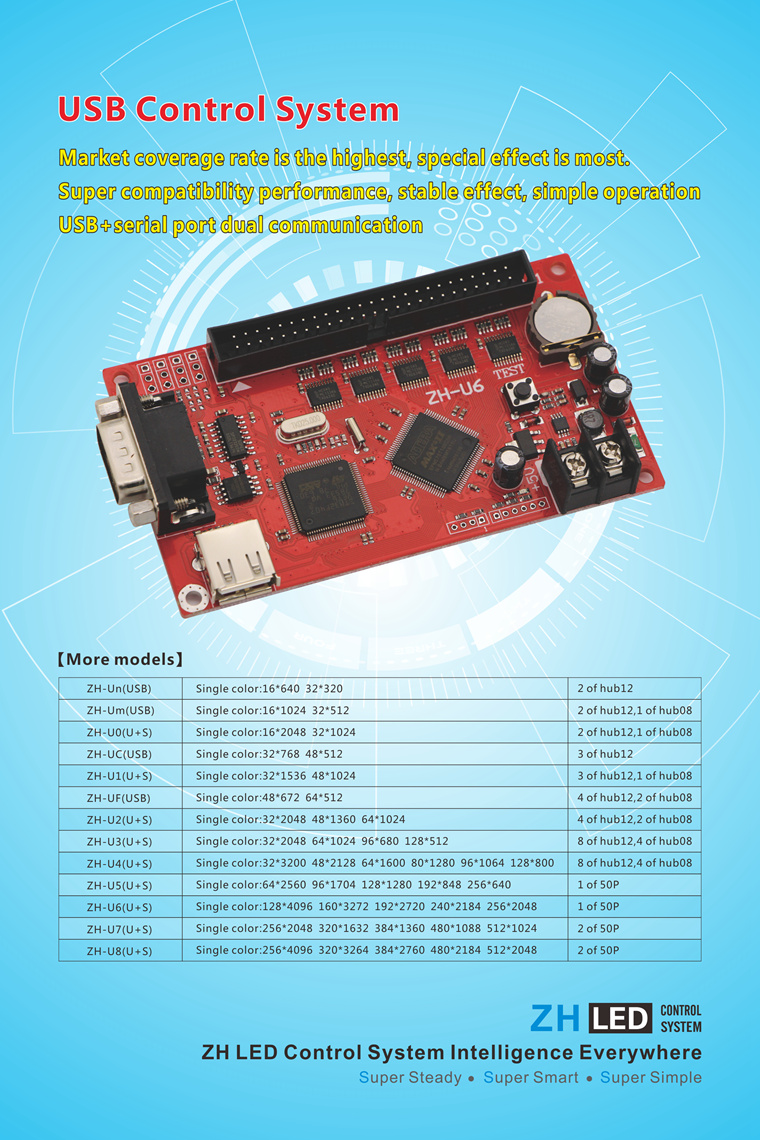 The exhibition ZH will show the product line:The new V5, video processor, full color synchronous series, full color asynchronous series, doorhead full color (high, low grey) series, long with network port card, a comprehensive upgrade version of WIFI series , GPRS series, network card series. Invite you to visit the ZH booth, cooperation and development!