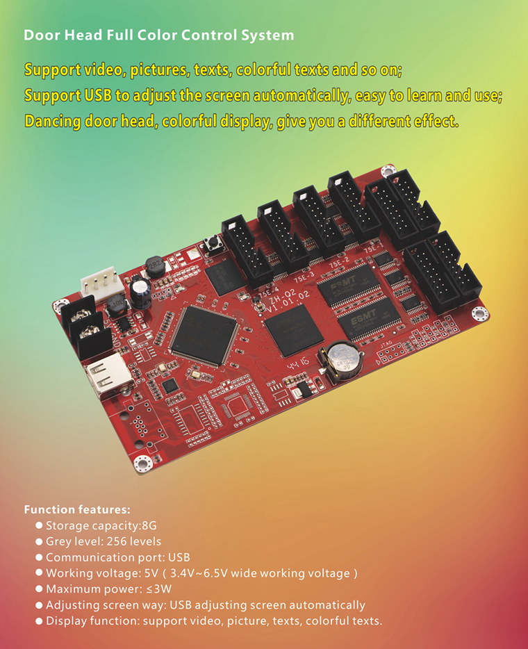 Warm Tip:Door head full color control system high gray series ZH-Q2 matching software: LED Player Q,.Door head full color control system low gray M series matching software: Led Flash Play V3.100.045 or above software.
